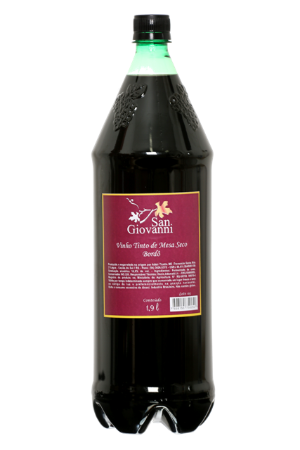 Vinho Tinto de Mesa Seco Bordo 1,880 LitrosVinho Tinto de Mesa Seco Bordô, elaborado exclusivamente com uvas da variedade Bordô. Possui uma coloração extremamente violácea, límpida e brilhante com aromas primários bem característicos da variedade apresentando também alguns aromas secundários frutados.Ao paladar apresenta-se encorpado, aveludado, equilibrado e harmônico.